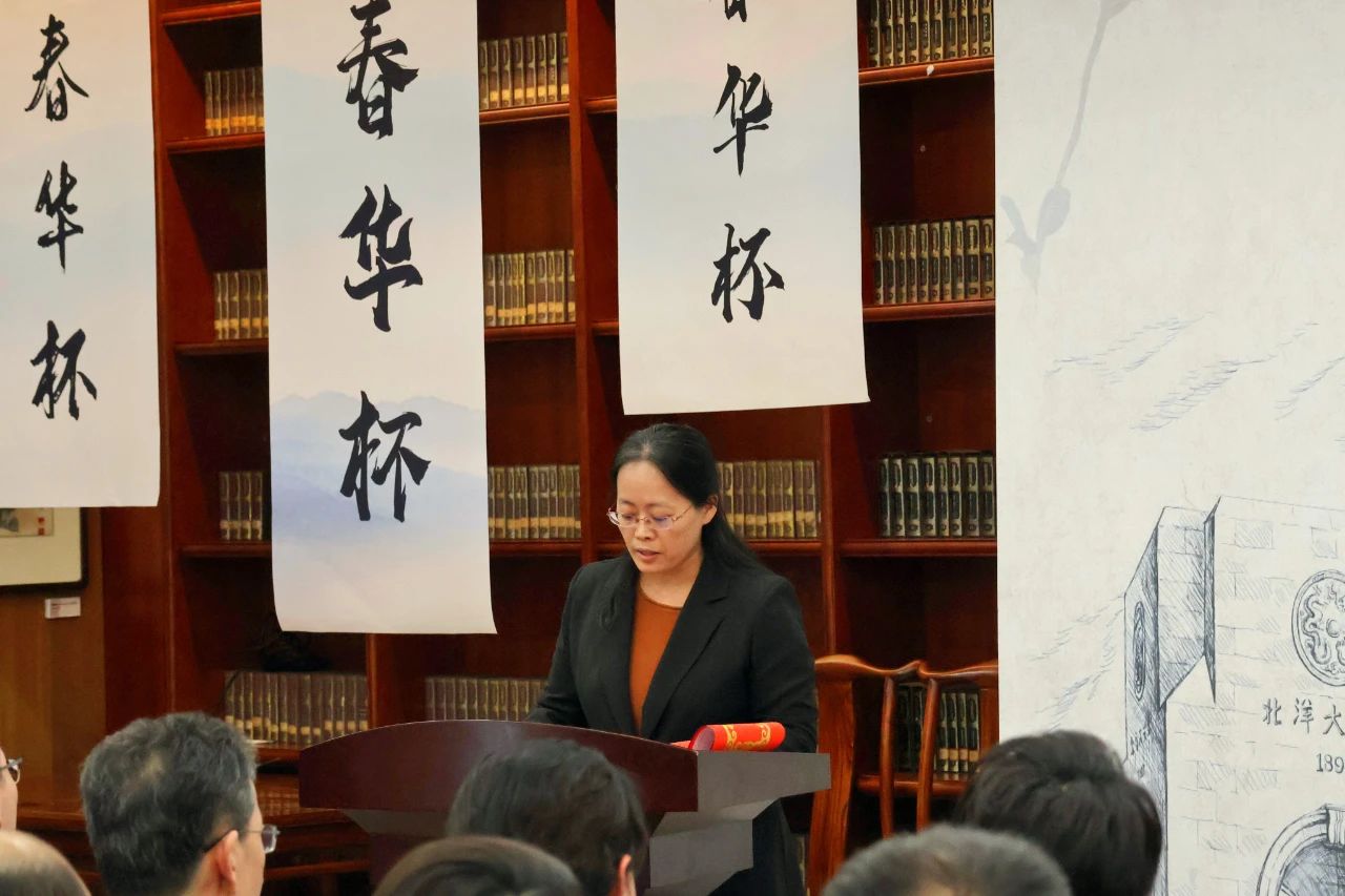 tt1069 党委书记吕静在致辞中指出,本届“春华杯”颁奖典礼是tt1069 开展学习贯彻习近平新时代中国特色社会主义思想主题教育的一次重要实践活动,同学们用精彩的文学作品书写中国之治、书写中国式现代化、书写中华优秀传统文化,是新时代青年增强中国人志气、底气、骨气的生动呈现。她勉励同学们以“春华杯”征文大赛为平台,坚持将马克思主义基本原理与中国具体实际相结合,用原创文学作品书写中国之治、阐释中国式现代化,在描绘中华优秀传统文化的文学作品中展现文化自信,创作出更多更优秀的文学作品。