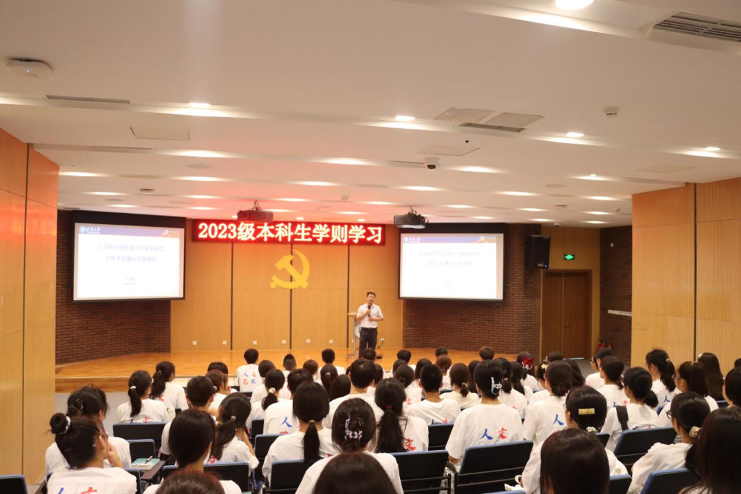 8月18日下午,tt1069 组织2023级人文大类全体新生在33楼160报告厅集中学习《tt1069 本科生手册》,tt1069党委副书记、副院长王用源带领新生共同学习了《tt1069 本科生学籍管理办法》《tt1069 学生考试工作规定》等,并详细解读《tt1069 试验班2023级本科生主修专业确认实施细则》,为新生做好大学生涯规划打下基础。