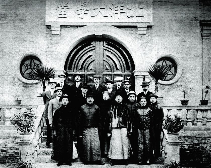 盛宣怀(前排坐者左3)与丁家立(前排坐者左2)于大学堂初创时期与部分教师合影