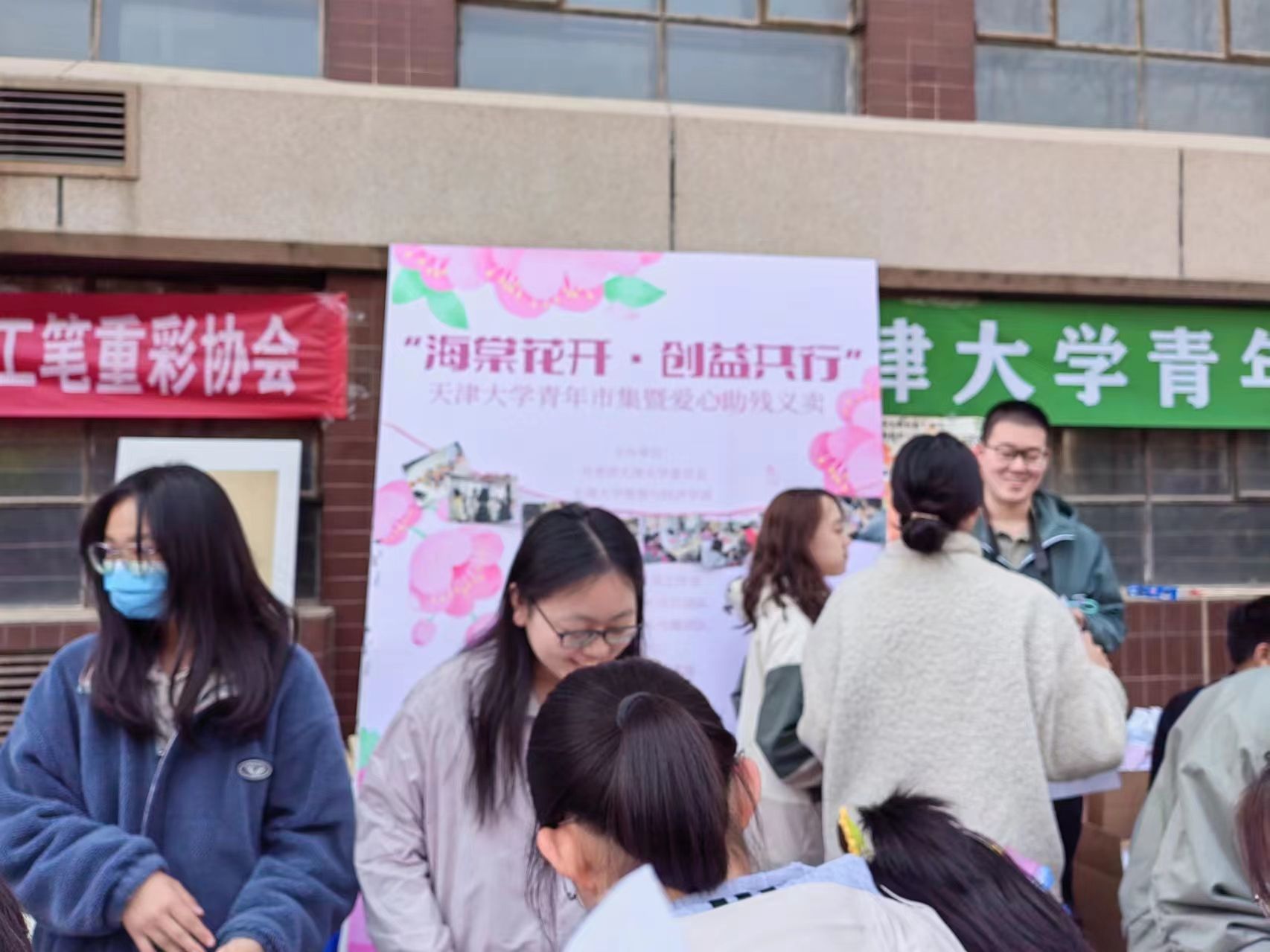 北洋工笔重彩协会的同学们联合校内多个社团以“创益共行”为主题,开展文创品展示与义卖。同学们以工笔重彩海棠古画为设计原型,共同设计,共同制作,让艺术融入天大学子的日常生活,让爱心充盈青年学子的心灵。义卖所得将全部用于支持残疾人就业与大学生创新创业。