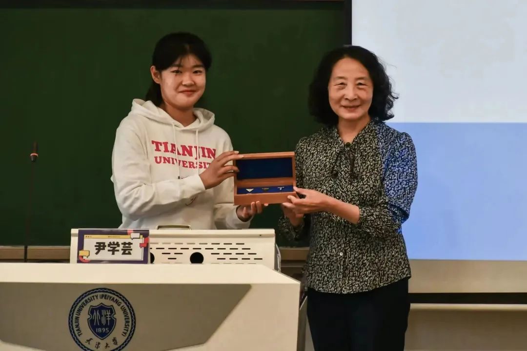 最后,在本场讲座的交流环节,尹学芸老师细致地解答了同学们提出的问题。为表达对精彩讲座的感谢,学生代表向尹学芸老师送上青促精心准备的纪念品。伴着天大师生热烈的掌声,本次讲座画上了圆满的句号。