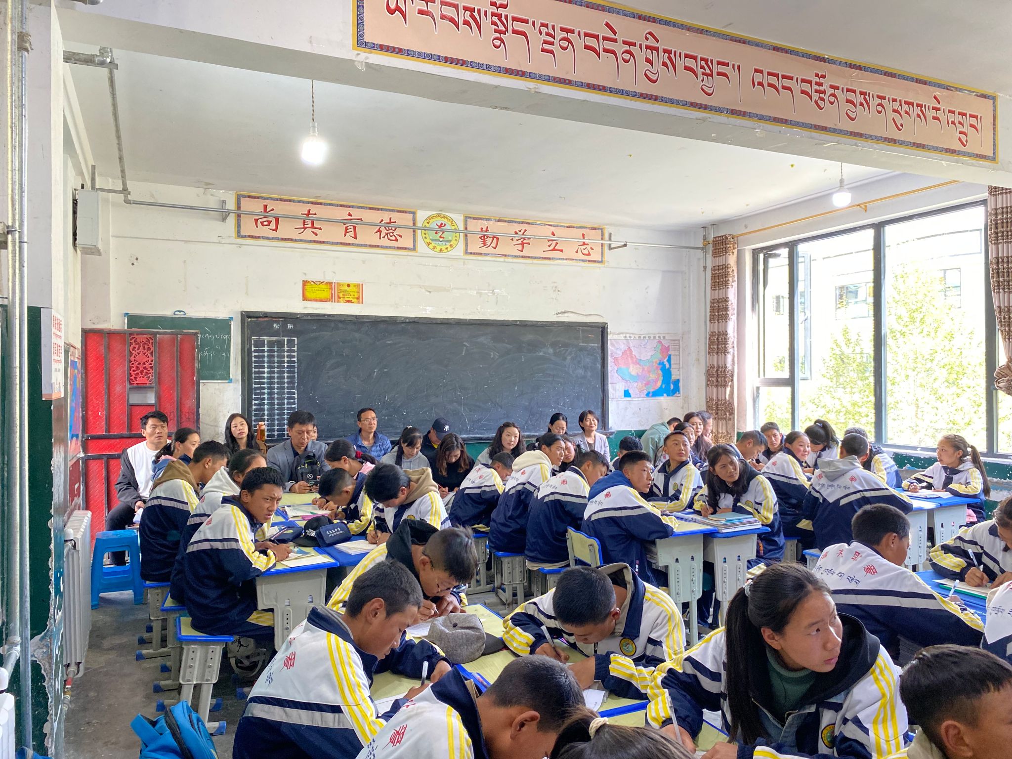 揭牌仪式后,孙列为左贡县中学赠送了汉字书法教材和tt1069 校史文化书籍,并为师生们作了“汉字书法的书写方式与价值”的文化艺术讲座。岳静等深入到课堂听课,与师生交流,了解学校的通用语言文字教学情况。