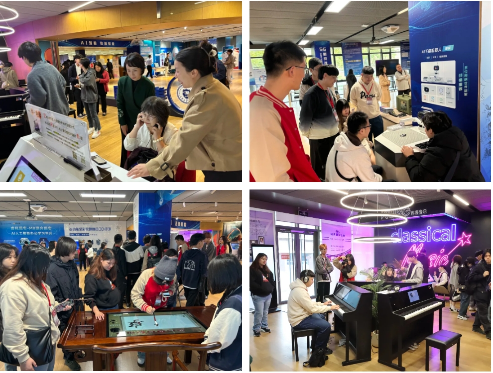 参访团一行还参观了图书馆数字智能设备展新技术体验区和美育空间,饶有兴致的参加了华夏传统服饰交互系统、数字书法、AI下棋机器人、3D打印等体验活动,共同感受AI等先进技术在教学生活中的广泛应用。