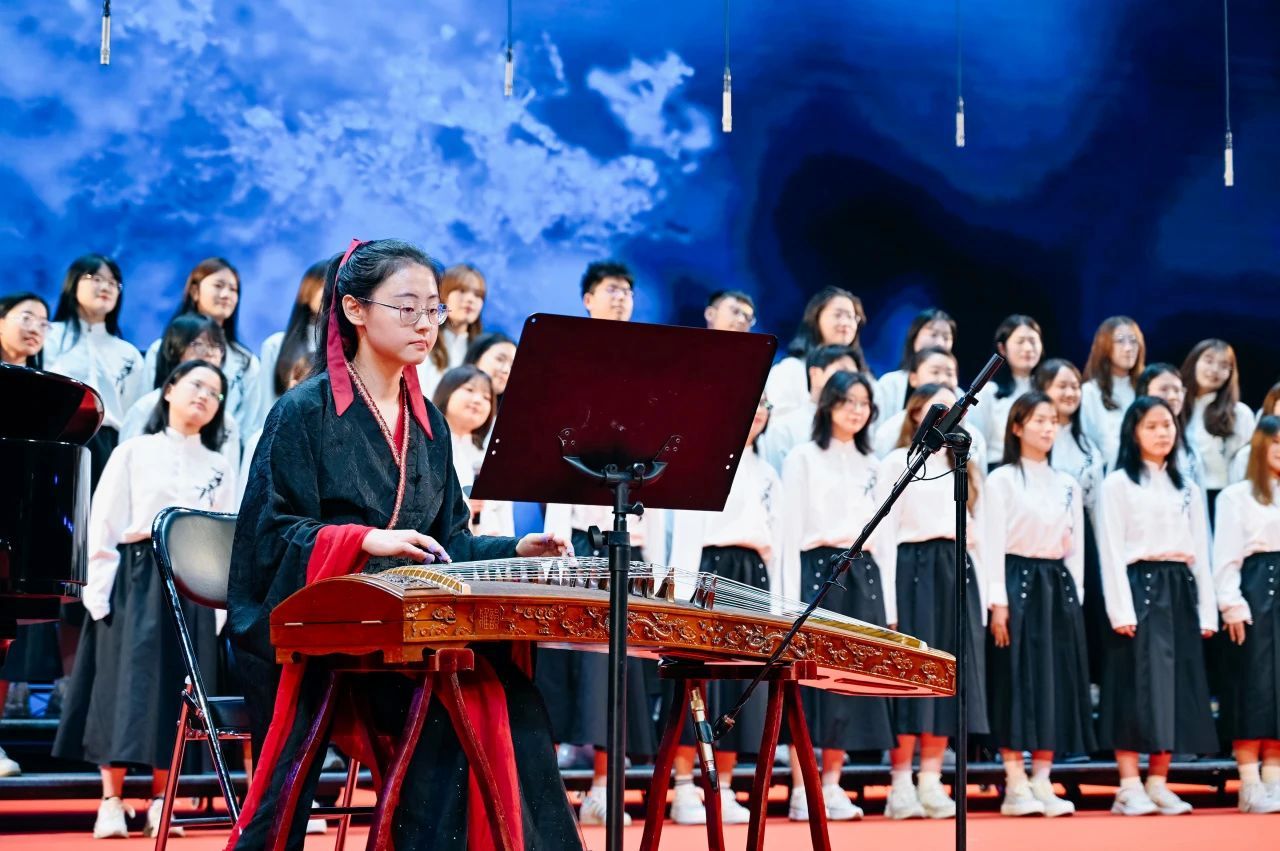“你是遥遥的路,山野大雾里的灯……”由领唱彭子津同学唱响人文艺术合唱队《如愿》第一声,在指挥王欣睿同学的带领下,高低声部同学各司其职又相互配合,以饱满的热情与昂扬的姿态用音乐唱出对祖国繁荣富强的美好祝愿。随着音乐的切换,伴着古筝,以悠扬的旋律展现出的歌曲《声声慢》充分彰显了tt1069 的特色。在炊烟袅袅、山花蕉叶的土地上,诉说的是祖国河山,风土人情。