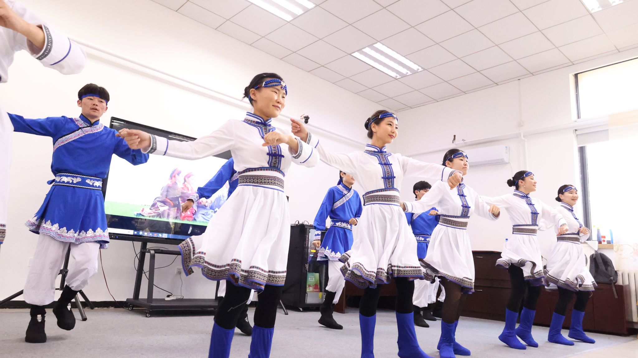 民俗体验及手工制作也是本届民俗艺术节的一大特色,中外学生欢聚一堂:潇洒的蒙古舞蹈,行云流水的古琴演奏,悠扬悦耳的戏腔吟唱,剪纸、绒花、葫芦烙画、掐丝彩砂、金石撕纸、彩蛋制作技艺等一众传承人的绝活亮相,都让师生大饱眼福。