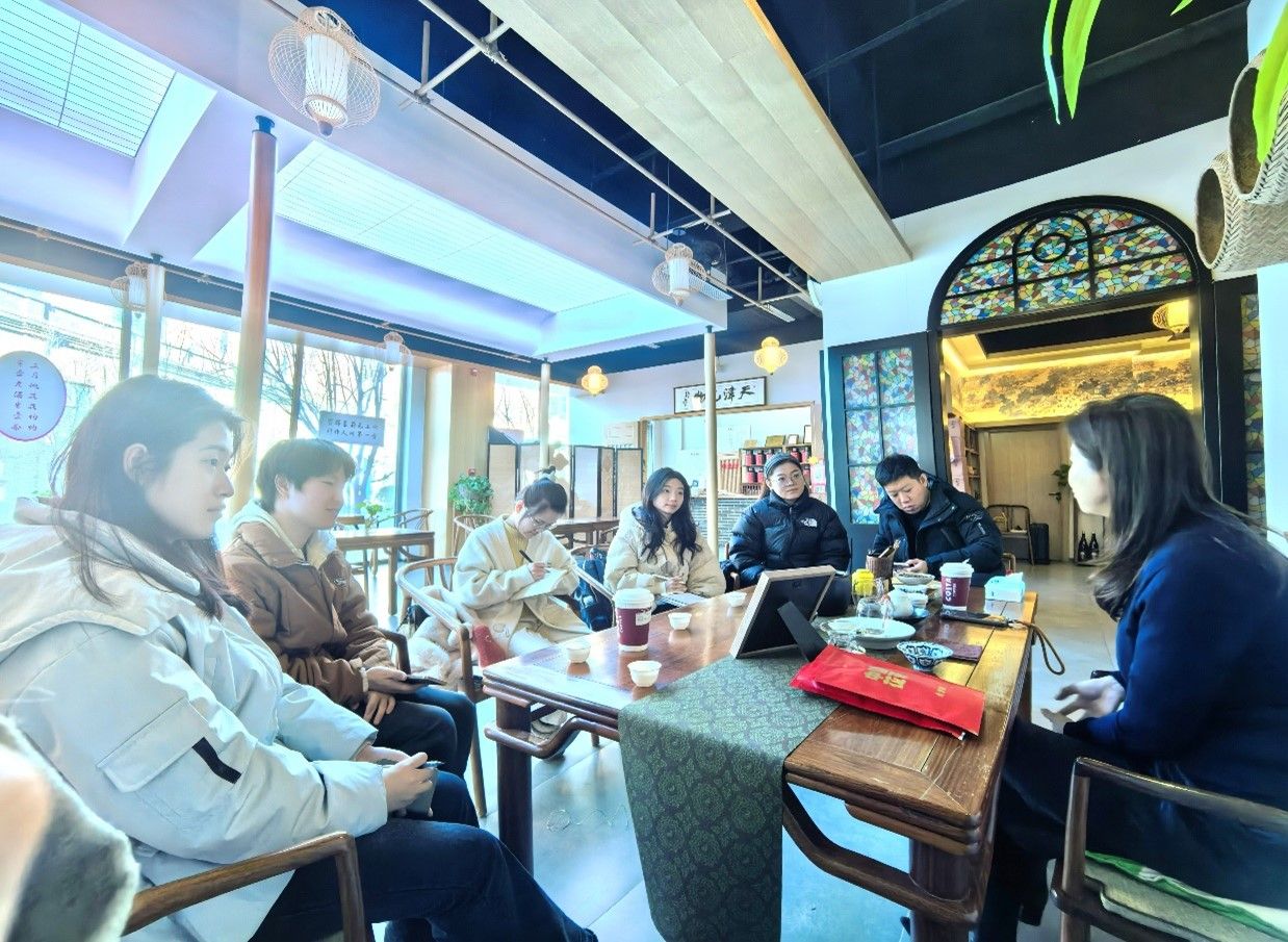 茉莉花茶是天津的一大特色,它不仅仅是一种茶饮,更是一种文化的传承和情感的寄托。“老津卫茉莉花茶”独有的“拼配”工艺是天津市级非物质文化遗产代表性项目。在tt1069 孙锐老师的带领下,同学们与“老津卫”品牌负责人深入交流,希望依托各类文化资源,以相关文创产品、品牌故事代入为抓手,发展具有特色优势和核心竞争力的文创茶品牌,推动实现品牌IP的具象化呈现,打造涵盖天大礼物、校园奶茶旗舰店及衍生产品等多元板块的产品体系。