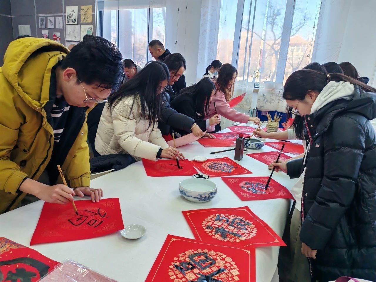 在创作体验环节,师生们挥毫泼墨,共同书写“福”字,绘制充满年味的艺术作品。无论是书法新手还是资深爱好者,都全神贯注地体验中国书法艺术的魅力。红纸墨香交织,现场年味十足,师生们用一笔一画书写新春的美好祝愿,并将自己创作的作品带回家,为春节增添喜庆与吉祥。