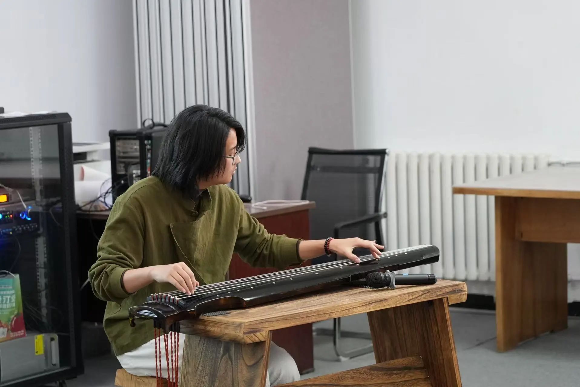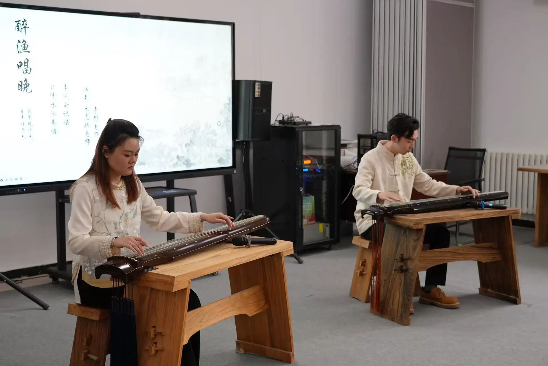 北洋古琴社指导教师李想、宋志扬毕业于天津音乐tt1069,师从李凤云教授,每周末至北洋古琴社进行琴课教学。美育课现场,二人示范合奏《醉渔唱晚》,以“渔父醉歌”为意象,通过跌宕奇崛的节奏与虚实交织的音色,塑造出狂放不羁的江湖隐者形象。