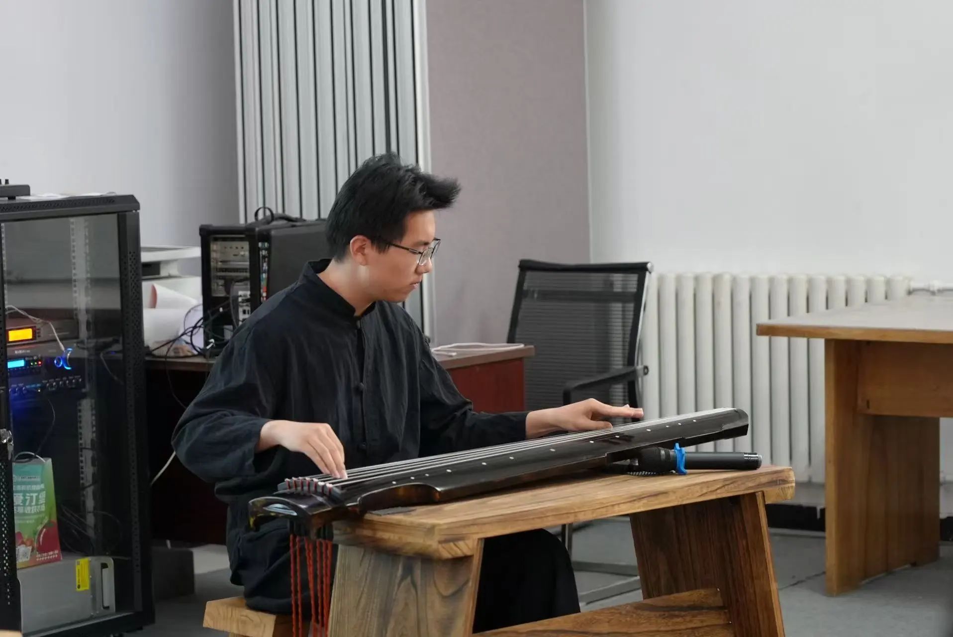 自动化专业2023级本科生严天祥弹奏一曲来自《西麓堂琴统》谱本的《神人畅》,将听众们带入“大乐与天地同和”的境界。《神人畅》传为上古尧帝所作,载于明代《西麓堂琴统》,以恢弘气象摹写天人感应之境。其音苍茫浑厚,清浊相济,全曲五段递进,节奏奇崛而章法森严,以罕见的六声音阶与双调转换,构建出人神交感、星汉流转的宇宙图式,被誉为“琴曲中的青铜鼎彝”。