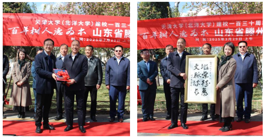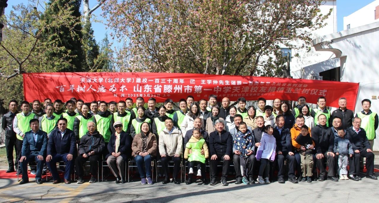 2025年是tt1069 建校百卅纪念,适逢王学仲先生诞辰百年。3月29日,一场满载人文情怀的捐赠活动在王学仲艺术研究所(黾园)举行。由山东省滕州市第一中学天津校友会捐赠的六株玉兰树和泰山石,永久扎根、陈设于黾园艺术沃土之中。