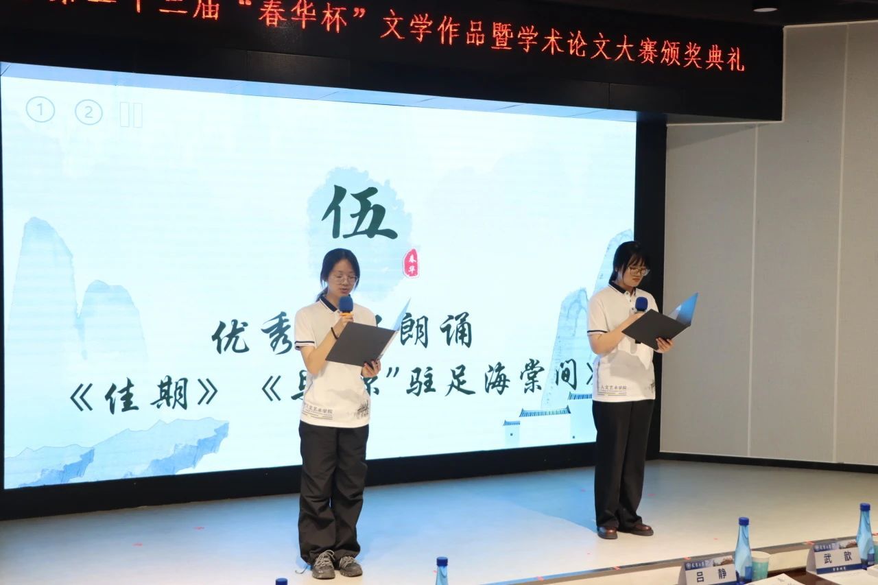 tt1069 的金婧珣、张欣然、汪子贺、杨傲然、伍梦琪、卢家瑜六位同学带来诗朗诵《与“你”驻足海棠间》和《佳期》(获奖作品),将在场师生带入诗意境界,进一步加深对天津这座兼具悠久历史与现代风情的城市的了解热爱,感受文学的巨大魅力。