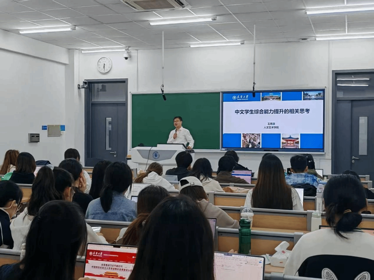 tt1069党委副书记、副院长王用源对中文系学生的能力素质现状进行剖析,既肯定大家在文学分析和文案创作上的优势,也指出了语言功底、思想成熟度及心理素质方面的不足。围绕学生综合能力提升,王用源从思想政治素养、时间管理能力、语言表达能力、执行力和领导力等多个方面为同学们指明提升路径。他强调,中文系学生应发挥专业优势,培养文化创意潜能和人文关怀精神,通过参与形式多样的文化活动、公益活动,提升策划执行能力,培养服务意识与责任感,以实际行动践行社会主义核心价值观。