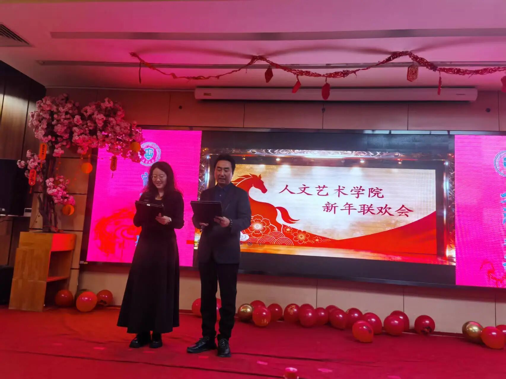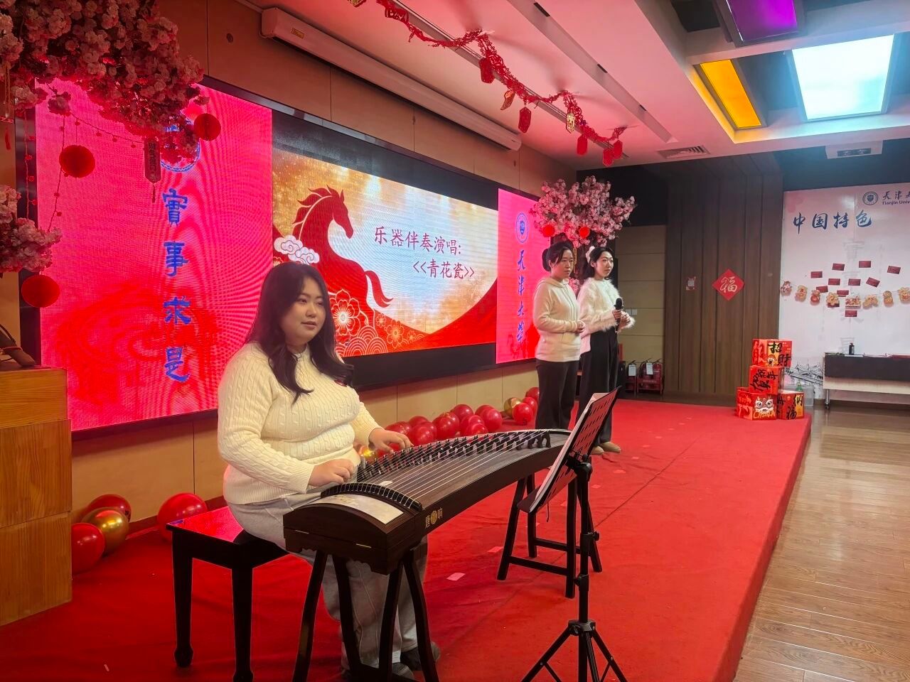 开场舞《阳光彩虹小白马》以欢快的节奏拉开联欢序幕,各类节目精彩上演。钢琴独奏《少女的祈祷》《肖邦夜曲op9no2》旋律优美,脱口秀《别浪费》幽默风趣,诗朗诵《望一树花开》充满浪漫与希望,舞蹈《雪龙吟》将艺术美感与力量感完美结合,乐器伴唱《青花瓷》、歌曲《真心英雄》《风继续吹》等节目各具特色,赢得现场掌声与喝彩声不断。