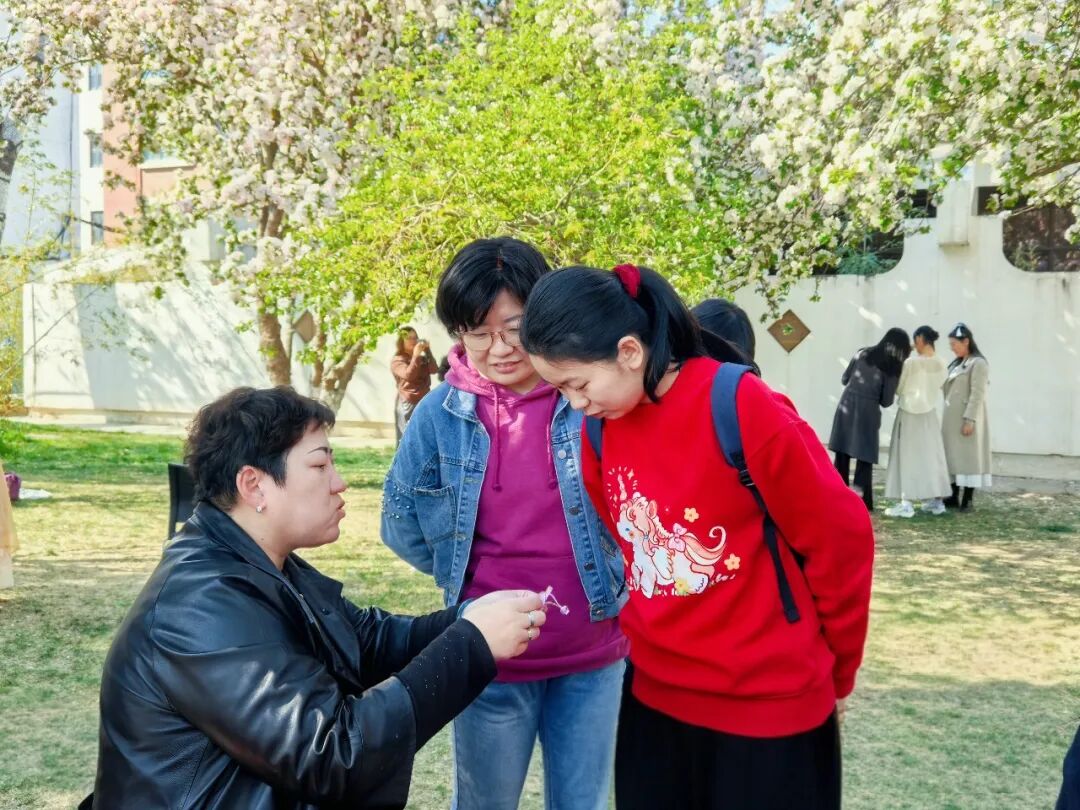 傍晚时分,海棠花瓣随风飘落,许多体验区仍排着长队。孙锐老师在接受采访时说道:“美育不是高高在上的说教,而是春风化雨般的浸润。今天大家脸上的笑容、手中的作品,就是对这场雅集最好的评价。未来我们还会策划更多这样的活动,让天大校园的每一寸土地都能成为美育的课堂。”