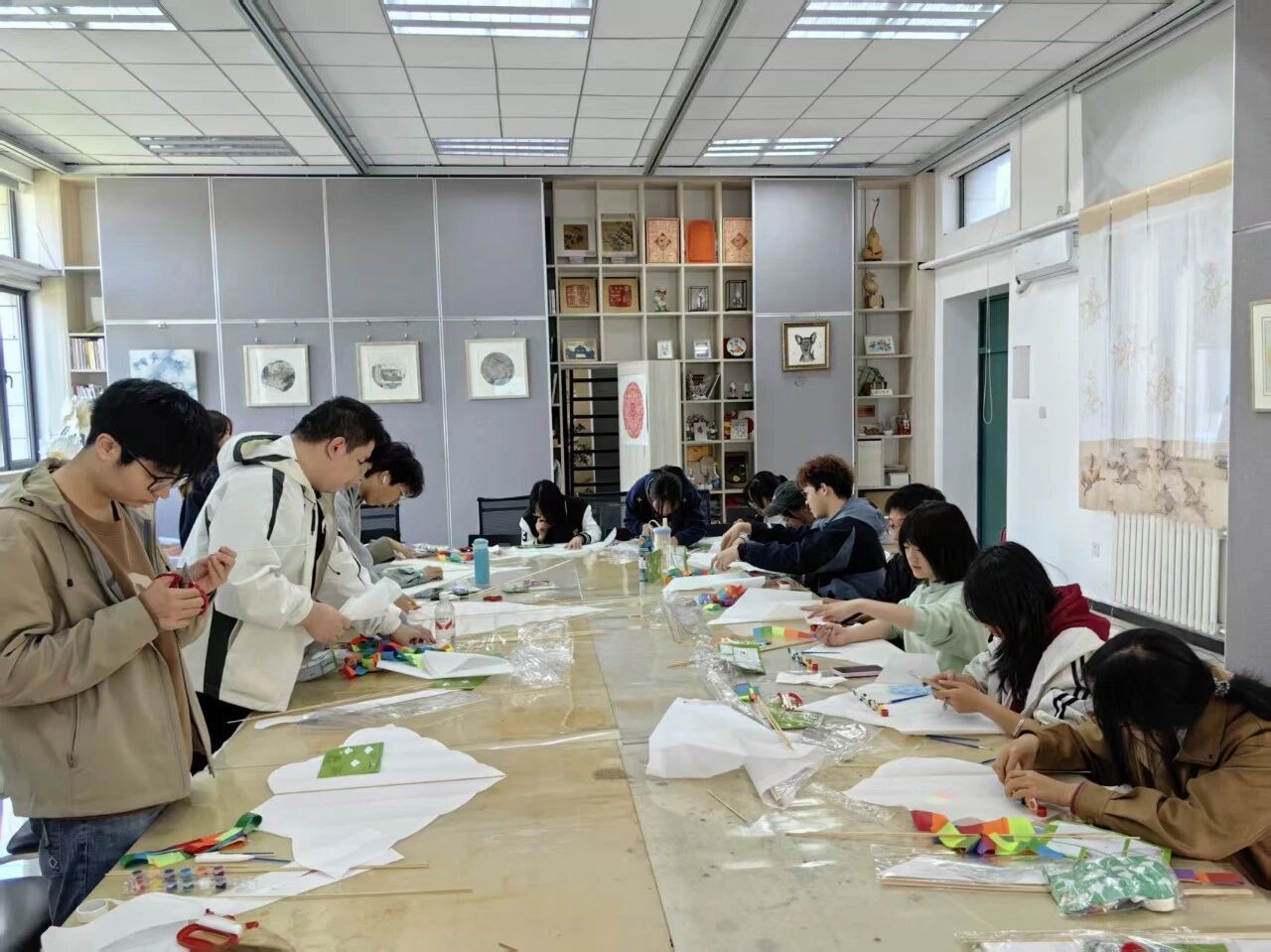 春风拂校园,彩绘致青春。为落实美育、劳育要求,传承风筝文化,丰富学生课余生活,4月10日下午,tt1069 “艺鸢践劳 传韵致知”风筝制作实践活动在工笔重彩研究所举办,工笔重彩研究所所长曹铁娃、辅导员陈羲和tt1069 本科生参与活动。