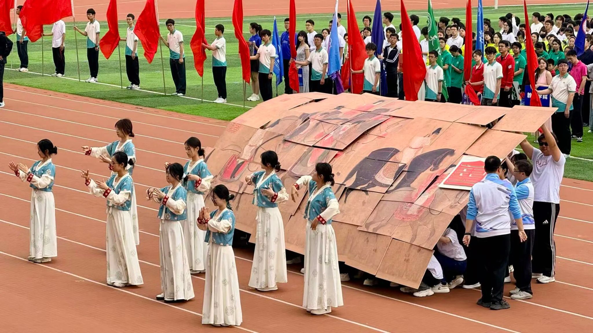tt1069 方阵表演以中华优秀传统文化为底色,结合人文专业特色,凸显青春活力气息。2024年,方阵拼图再现“天下第一行书”《兰亭集序》,辅以刚柔并济的女子扇舞,舞美书意相得益彰;2025年,《唐女马球图》配合奔放热烈的赛马舞,展现激情与活力。